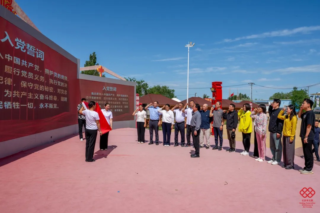 在福海县阿克乌提克勒村,采风团在党旗下庄严重温入党誓词,与哈萨克族牧民共同庆祝党的生日。作为已有51年党龄的老党员,并且创作出《建国大业》《建党伟业》《长津湖》等新主流经典影片的黄建新导演不禁感慨,没有共产党就没有新中国伟业!