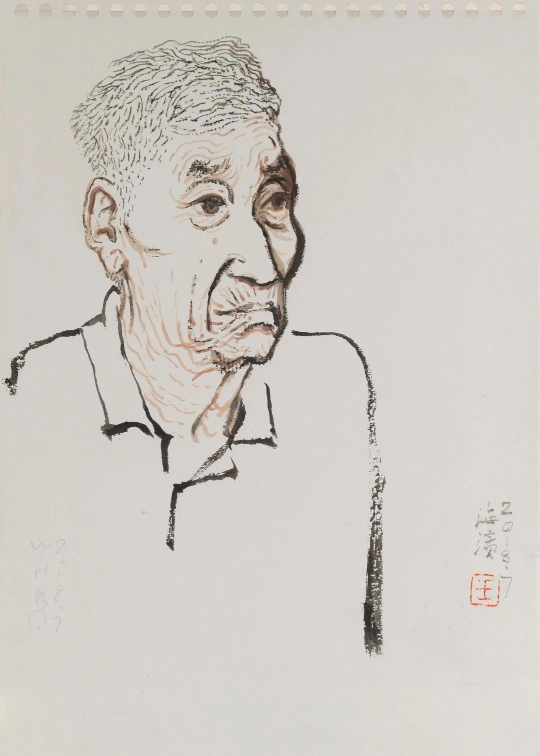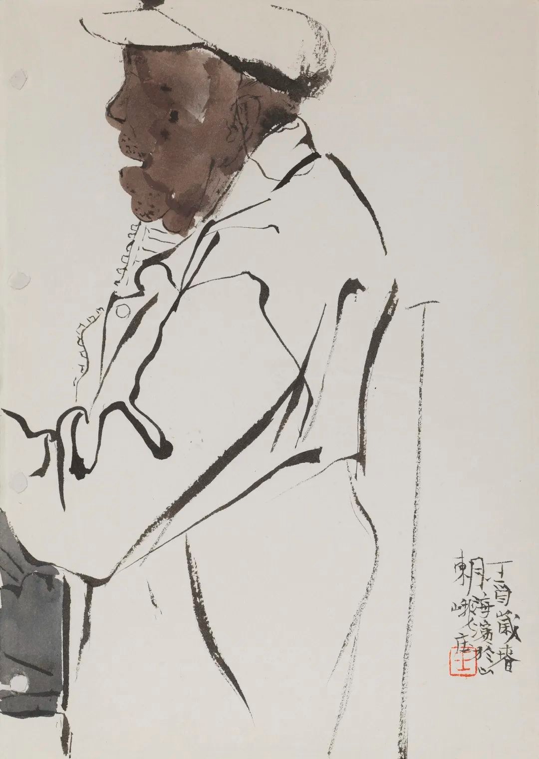 张卉《人物肖像保安》 国画 139cmX61cm