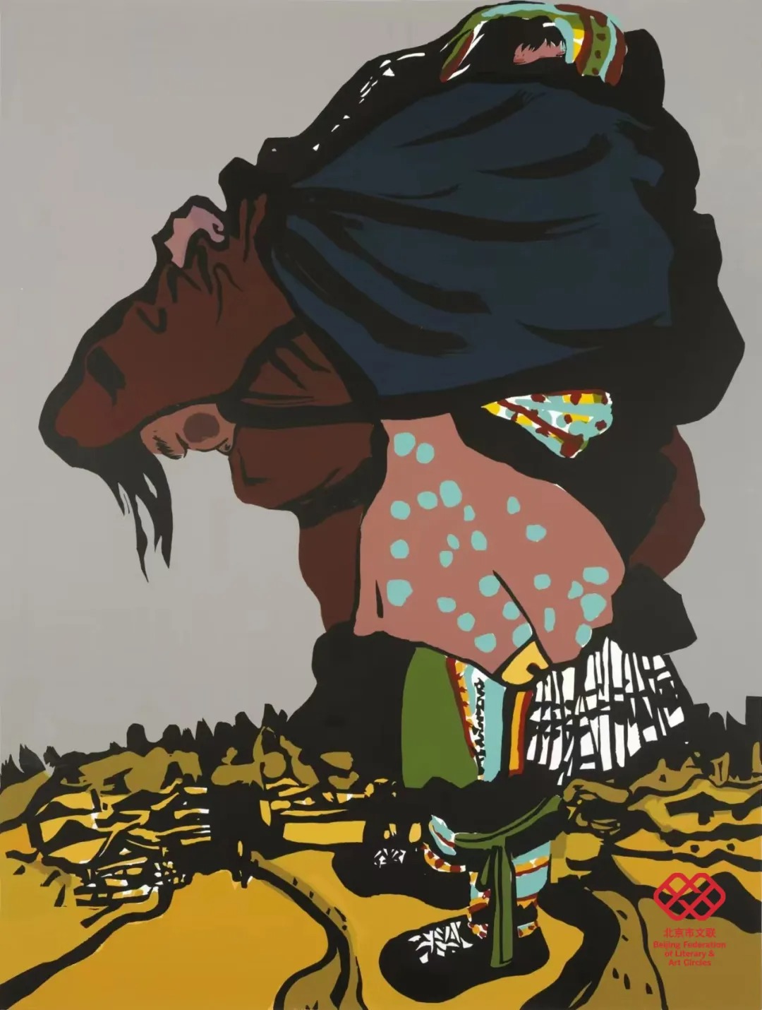版画《母亲的背负》(150cm×110cm), 作者:康蕾