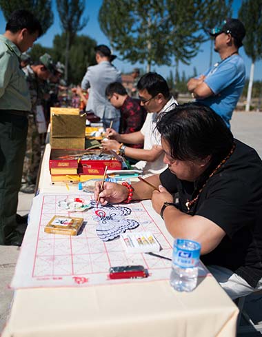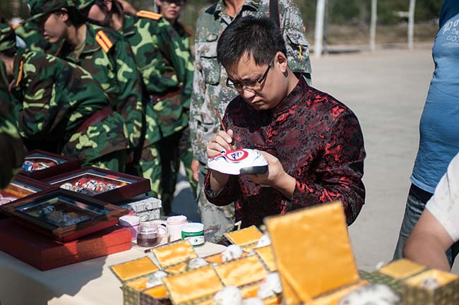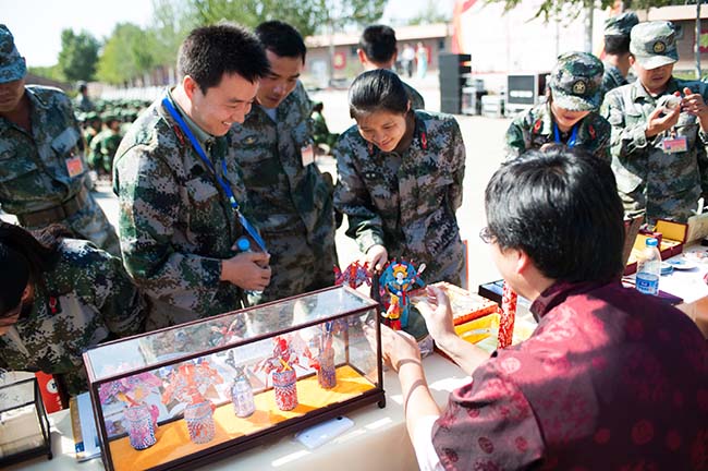 此外,本次活动将近伟大祖国65周年华诞,为弘扬中华民族传统文化、增强广大学生的民族认同感、激发爱国之情,北京民协还特邀王俊林、赵永岐、杨晓康等艺术家与现场观众进行互动,近距离地表演展示剪纸、脸谱、彩蛋、风筝、鬃人制作等民间手工艺。