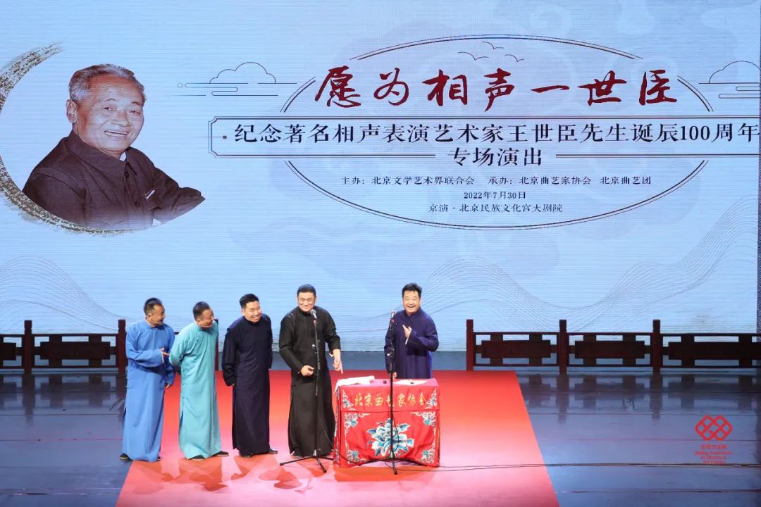 7月30日晚,由北京市文联主办,北京曲艺家协会、北京曲艺团承办的“愿为相声一世臣”——纪念相声表演艺术家王世臣先生诞辰100周年专场演出在北京民族文化宫大剧院举办。
