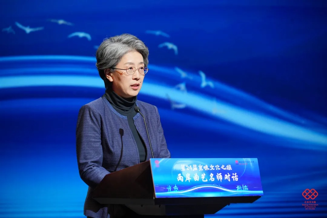 曲艺是中华优秀传统文化的重要组成部分。陈宁在致辞中回顾了二十余年来京台两地文化交流取得的成果和经验,并表示,中华文化是两岸同胞心灵的根脉和归属,北京市文联是首都文艺家之家,也是台湾文艺家之家,未来将会通过更加丰富和深入互鉴交流,谱写京台和鸣交响曲。