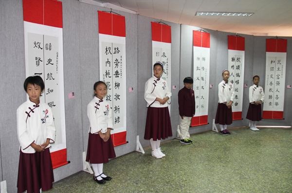 启动仪式后,“践行核心价值观·弘扬传统文化”木林镇中心小学楹联书法展拉开了本次活动的序幕。本次展览共展出师生作品40余件,这些作品主题鲜明、内容广泛,深入挖掘中华传统文化,弘扬社会主义核心价值观,受到了领导和现场社会各界群众的好评。