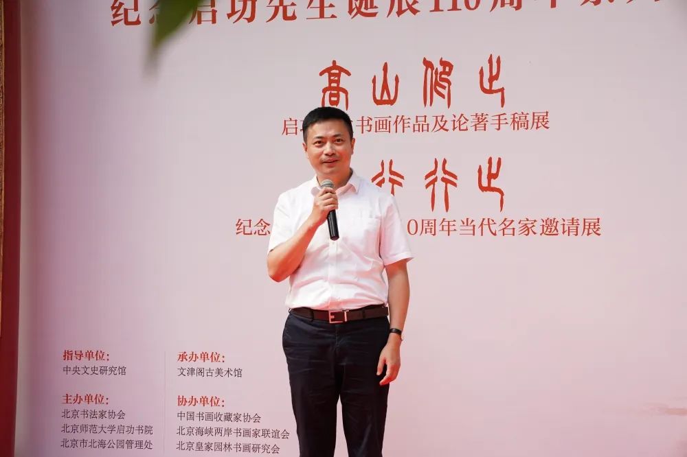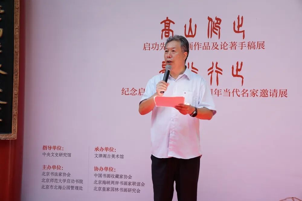 7月18日,由中央文史馆指导,北京书法家协会、北京师范大学启功书院、北海公园管理处主办,文津阁古美术馆承办,中国书画收藏家协会、北京海峡两岸书画家联谊会、北京皇家园林书画研究会协办的“高山仰止”启功先生书画作品及论著手稿展、“景行行止”纪念启功先生诞辰110周年当代书法名家邀请展在北海公园画舫斋开幕。