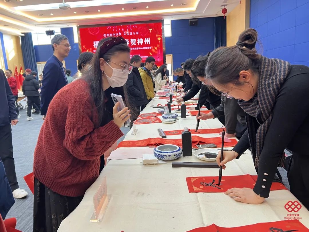 近日,北京市文联组织首都书法家、美术家、民间文艺家走进海淀区高新技术企业博彦科技、怀柔科学城中国科学院国家空间科学中心,开展市文联“中华节庆”文化惠民系列活动,写春联、送“福”字、剪生肖、吹糖人、编中国结,提前为科技工作者送上“文化年货”与新春祝福。