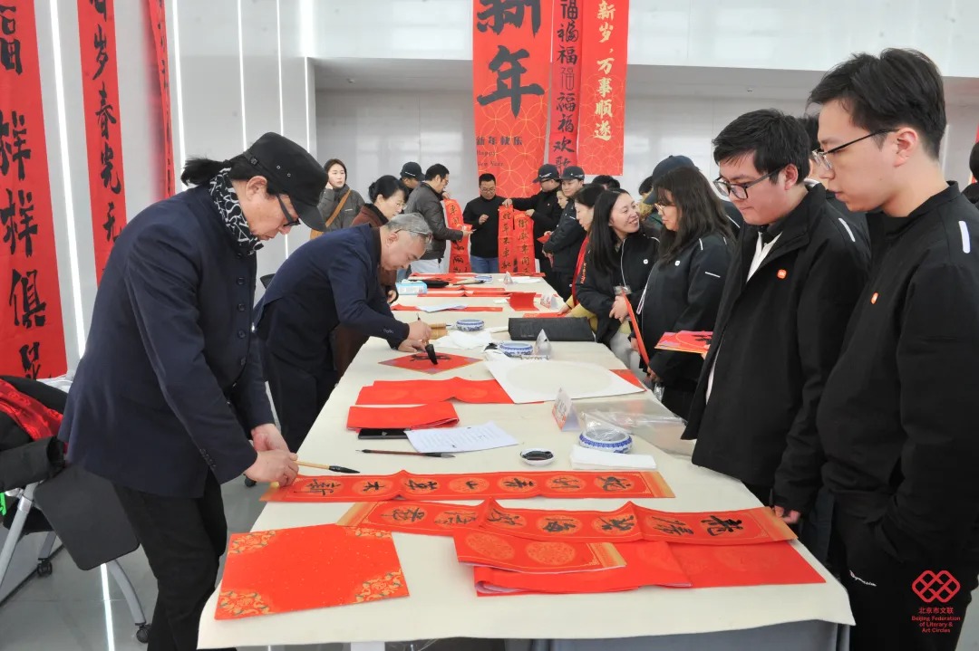 1月24日,“福满京城 艺润万家”北京市文联春节文化惠民活动走进位于北京经济技术开发区的小米汽车工厂,北京市文联、经开区文联的20位书法家、美术家和民间艺术家,为小米汽车工厂的科技工作者和一线员工送上了一份浓浓的新春祝福。北京市文联一级巡视员田鹏出席活动。