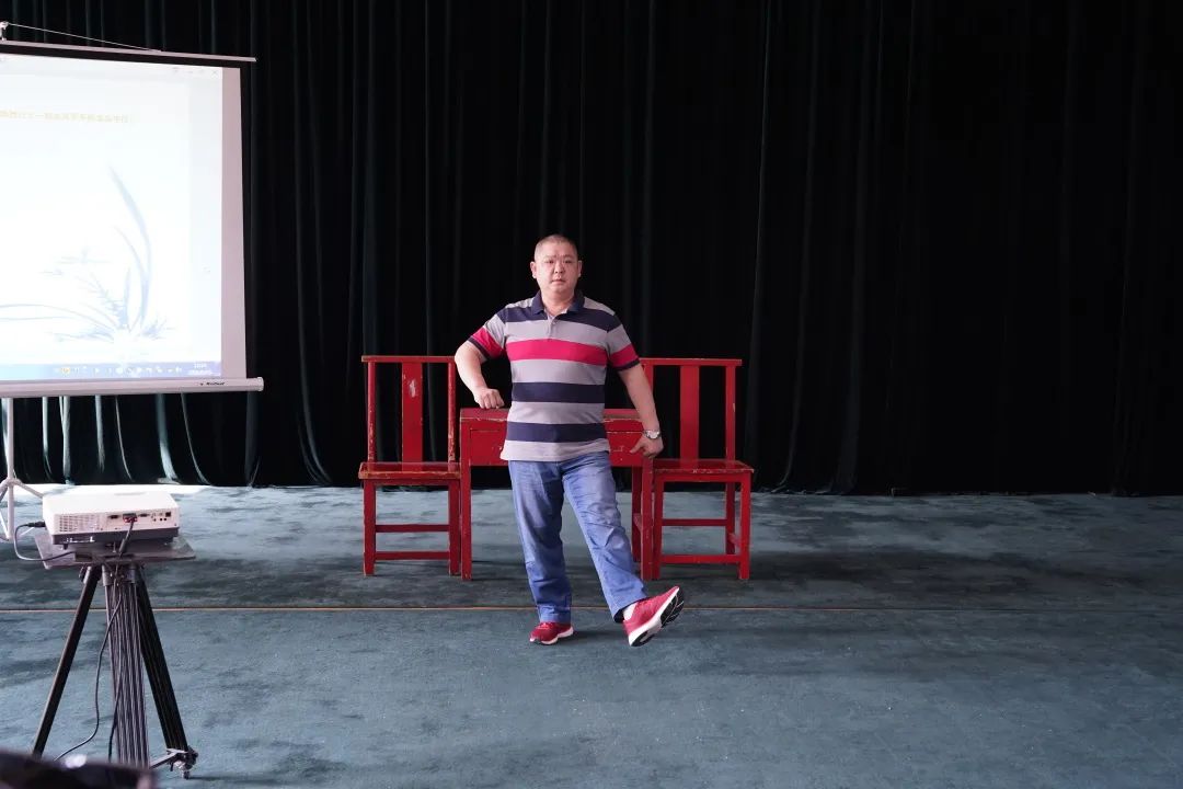 北京京剧院优秀青年花旦演员张蕊、优秀花脸演员赵海龙为学员介绍戏曲起源、流派行当、脸谱、服装和四功五法等京剧艺术知识,带领大家近距离感受京剧之美。