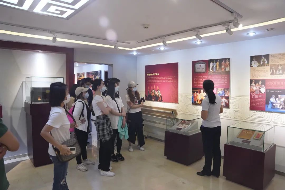学员参观剧院京剧艺术传承陈列展。讲解员就剧院历史、戏曲服装、道具等方面进行了详细的讲解。