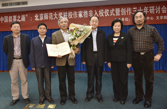 当天下午,作家格非接过了北师大校长董奇、北师大国际写作中心主任莫言的聘书,成为北京师范大学第十位驻校作家。