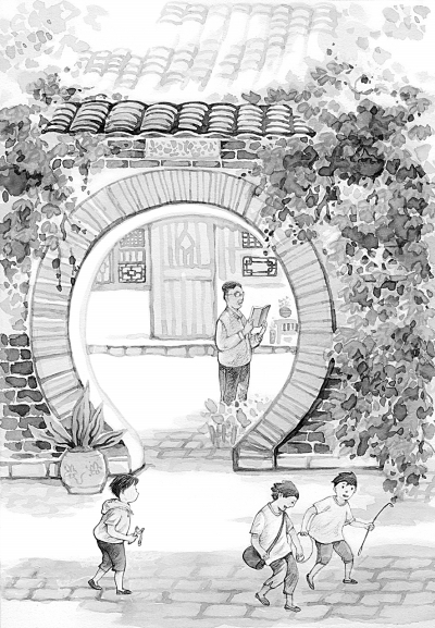老钟和爬山虎(选自《我们的老院》) 杜凌云绘