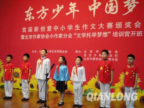 7月6日上午,中国现代文学馆内激情洋溢、充满了笑语欢声。由北京市文联主办、北京作家协会和东方少年杂志社承办的“东方少年 中国梦”首届新创意作文大赛颁奖典礼在北京举行。此次作文大赛于2012年12月启动,共征集参赛作品50000余篇。最终选出特等奖10篇,一等奖30篇,二等奖60篇,三等奖160篇。