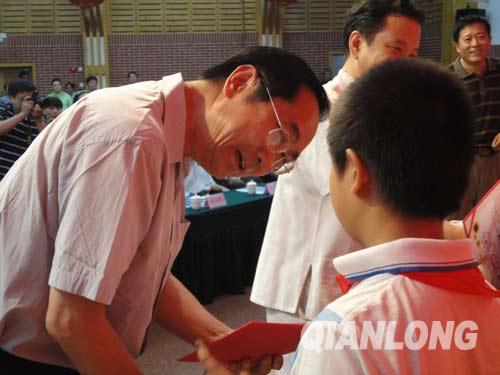 北京市文联党组书记陈启刚向小作者表示祝贺。