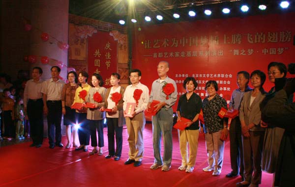 北京市文联党组书记陈启刚,北京市文联党组副书记驻会副主席张光一、东城区文联主席王富国,东城区东花市街道等领导出席了演出活动。