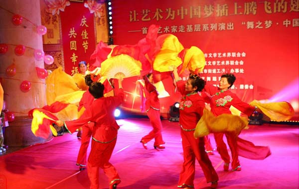 9月17日下午,由北京市文联主办,北京舞协承办,东城区文学艺术界联合会、东城区东花市南里社区协办的“舞之梦·中国梦”专场演出在南里社区露天场地进行,此次演出“接地气、近距离”,重点突出艺术家到群众中去和社区百姓同台献艺的特色,充分展现社区民众追梦、筑梦、圆梦的美好情怀和构建和谐社区的美好愿望。演出丰富多彩又互动热烈。艺术家同百姓打成一片,前来观看的1000多名社区的老人、小孩、职工、干部情绪热烈,掌声不断。