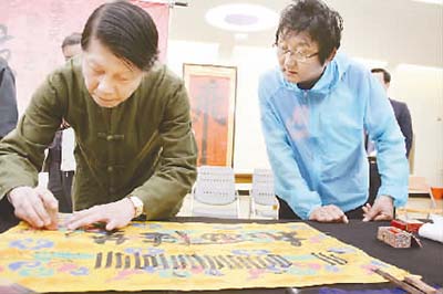 书法家颜振卿、方放、袁永齐、邢光辉的书法各具特色,特别是当介绍到颜振卿为唐代著名书法家颜真卿的直系后人时,周围一片赞叹。随团来台的藏族书法家南杰旺扎的藏文书法引起当地书法家的浓厚兴趣,双方还多次合作书写了书法作品——上由南杰旺扎用藏文书写,下由台湾书法家用汉字写上释文“扎西德勒”或“吉祥如意” 。北京书协理事、书法家方放特别有感触地说:“来到台湾,我们和当地书画家彼此书写的题材、喜欢的名家、临写的碑帖,都是一样的。到这里来,感觉很亲切,我真正地、越发深刻地感受到了同根同源的含义。 ”