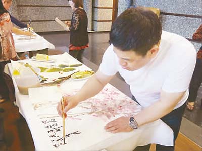 跟表演艺术家与观众的热烈互动相比,书画笔会交流则表现出一种和风细雨、润物无声的温馨与和谐。刚刚抵达宝岛,在新竹的活动启动仪式上,书画家们就立刻与当地书画家进行了交流。随后从彰化、苗栗、云林、台南到最后又回到新竹,他们一路挥毫泼墨,或写下“书画结缘”“两岸一家”作品,或描绘祖国大好河山、日常花卉,用有着悠久传统的中华水墨形式,表达着两岸文化同根同源的主题。
