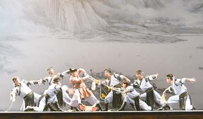 西藏拉萨市歌舞团表演藏戏舞蹈《梦回雪顿》