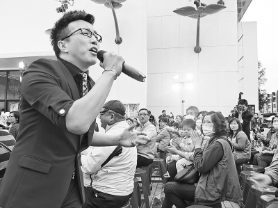 4月10日,台南市南区湾里联合里活动中心,蒙古族80后歌唱演员太文太一曲《父亲的草原母亲的河》,令一位老人眼含泪花。演员刚走下台,老人就握着他的手久久不放开。老人名叫宋亭萱,是台南市歌唱艺术协会的首席指导老师,对太文太的演唱赞不绝口。太文太送给老人两张专辑,令宋亭萱非常感动,她年过七旬的老伴、台湾有影响的书法家陈吉安,专程冒雨去停车场取出自己的书法作品相送。诗、歌、书交融,这就是中华文化的魅力。