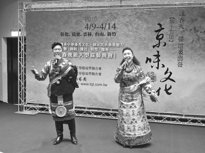 4月8日,拉萨歌舞团藏族歌手格桑央珍、多吉顿珠在新竹演唱《欢迎您到拉萨来》。