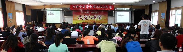 9月18日下午,由北京市文联主办的文化公益活动“北京文联大讲堂”走进羊坊店街道,讲授了《天安门的见证史》的历史文化讲座。羊坊店街道团委组织了该地区机关、院校、企事业单位300多名工作人员参加了听课。