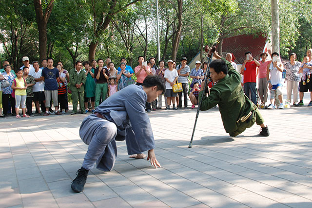 演出在昌平中心公园东门附近空场进行。没有舞台,没有道具,音响是自带的便携式低音设备,条件简陋,场地粗糙,演员们却以全情投入的表演和高难度的舞蹈动作感染着驻足欣赏的群众。