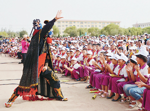 一路走来,虽然辗转数千公里,就连没有演出任务的记者都觉得十分劳累,可是艺术家们并没有因为长途跋涉的辛苦而耽误和怠慢任何一场演出。尤其是本次活动的最后一场演出,地点设在和田地区民丰县,这里距离和田市区有十五六个小时的车程,一下车,艺术家们顾不上休息,就赶赴演出现场准备。平均年龄不到17岁的四个杂技演员表演的节目每到一处都深受欢迎,但连续演出,对这几个小演员的体力都是十分严峻的考验。每场演出他们都尽最大可能展示出最精彩的高难度的动作。“亚克西!亚克西!”很多维吾尔族观众用他们的方式表达着对首都艺术家精彩表演的赞叹。