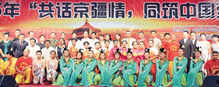 夏末秋初的新疆瓜果飘香,到处洋溢着丰收的喜悦。8月18日至31日,带着首都人民对新疆维吾尔自治区各族人民的深情厚谊,100余名首都艺术家在北京市文联主席张和平,市文联党组书记、常务副主席陈启刚的带领下,辗转数千公里,先后在阿克苏、和田等地区的社区、农村、学校、建筑工地、部队以及边防哨所,倾情奉献了15场文艺演出、20场书画笔会、2场两地艺术家联欢,看望慰问了13户维吾尔族群众、先进典型和沙海老兵家庭,给20名援建工人、10名武警战士发放了电话卡、给一个连队送去了西瓜,向两个边防公安派出所赠送了电脑、打印机等,与新疆各族人民“共话京疆情·同筑中国梦”,服务群众10万人,受到普遍欢迎。