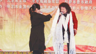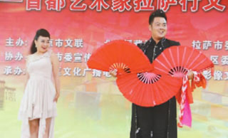 这一行70余人,在北京市文联主席张和平的率领下,汇聚了北京及周边省区的不少艺术名家,涵盖舞蹈、歌唱、杂技、相声、器乐、曲艺、魔术、书法、绘画等多个艺术门类,在20日至30日总计11天时间内,奔赴拉萨和林芝,面向基层群众,深入社区、学校、乡村、机关、驻藏解放军和武警部队,开展7场文艺演出和7场书画创作交流笔会。他们连续5年把来自北京的问候传递给西藏的父老乡亲,用手中的笔墨以及歌舞技艺向西藏人民传达着首都人民的关爱和记挂,为“京藏一家亲”的民族团结之情抒写新的篇章。“今年是西藏和平解放65周年,也是我们第5次来到西藏开展文化交流慰问活动。”北京市文联党组副书记刚杰表示,文化援藏是一个细活,要考虑到观众的需要,要把西藏人民需要的文艺精品精准地送给他们。