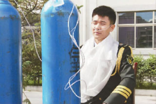马佳在演唱《强军战歌》之后靠吸氧缓解高原反应