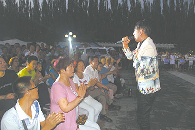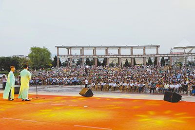 此次赴内蒙古开展文化交流,不仅汇聚了中央和北京市属文艺院团的艺术人才,还囊括了诸多非京籍文艺工作者,从而搭建起一个内容丰富、别具特色的文艺舞台。首都师范大学音乐学院舞蹈系带来的舞蹈《欢天喜地秧歌情》喜庆热闹;歌曲《芦花》、《载歌载舞》,唢呐独奏《盛世欢歌》,京西太平鼓《鼓舞盛世》等京味儿十足;川剧变脸、杂技《炫舞飞鸽》新鲜有趣;北京杂技团带来的《转碟》、《蹬鼓》、《肩上芭蕾》更是惊险刺激。虽然演出场地有的简陋到只有广场上的一块地毯,但每位演员都尽心尽力,克服各种困难,呈现了最好的演出状态。在赤峰市喀喇沁旗,为观看首都艺术家的演出,锦山广场一下涌进3万余名观众,成为整个交流活动的亮点。