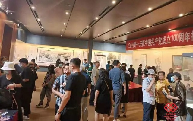 本次书画邀请展是北京市文联主管社会组织向建党百年的献礼,是落实习近平总书记关于宣传思想工作、文艺工作、群团工作的重要论述的具体举措,也是文联对社会组织从“入门”到“入列”管理的积极探索。展览由北京陈半丁艺术研究会发起,北京城市山水画研究会、北京当代中国书画研究会、北京九洲书画艺术研究会、北京龙虎书画会、北京市老舍研究会、北京扇子艺术协会、北京楹联学会、北京中韩书画家联谊会等9家社会组织共同举办,展出的120余幅具有一定思想性、艺术性的书画佳作,从不同视角反映出艺术家们爱党、爱国、爱人民的家国情怀。