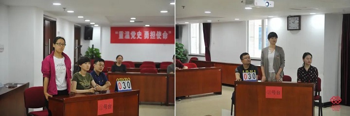 参加初赛的共10支队伍,每两队为一组分五组进行1对1淘汰赛。比赛现场必答环节,各队参赛选手势均力敌,你追我赶。在抢答环节选手们思维敏捷、抢答迅速,现场气氛十分热烈。选手们拼手速、比知识,运用平日里积累的党史知识,积极应答赢得现场人员的阵阵掌声。风险挑战环节铺谋设计、密切配合,将竞赛活动推向高潮。