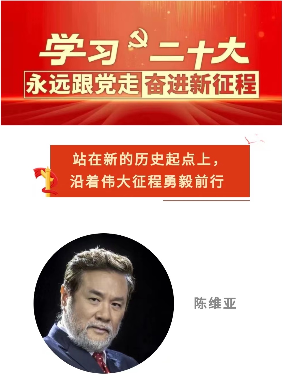作为庆祝中国共产党成立100周年文艺演出——大型情景史诗《伟大征程》的总导演,在创作过程中,我真切感受到中国共产党的伟大、光荣和艰辛,切身体会到中国共产党一心为人民的伟大情怀。我作为一名舞蹈工作者,要认真学习习近平总书记在中国共产党第二十次全国代表大会上所作的报告,踔厉奋发、勇毅前行,感受新时代、歌颂新时代、奋进新时代,向着艺术的高峰勇敢攀登!