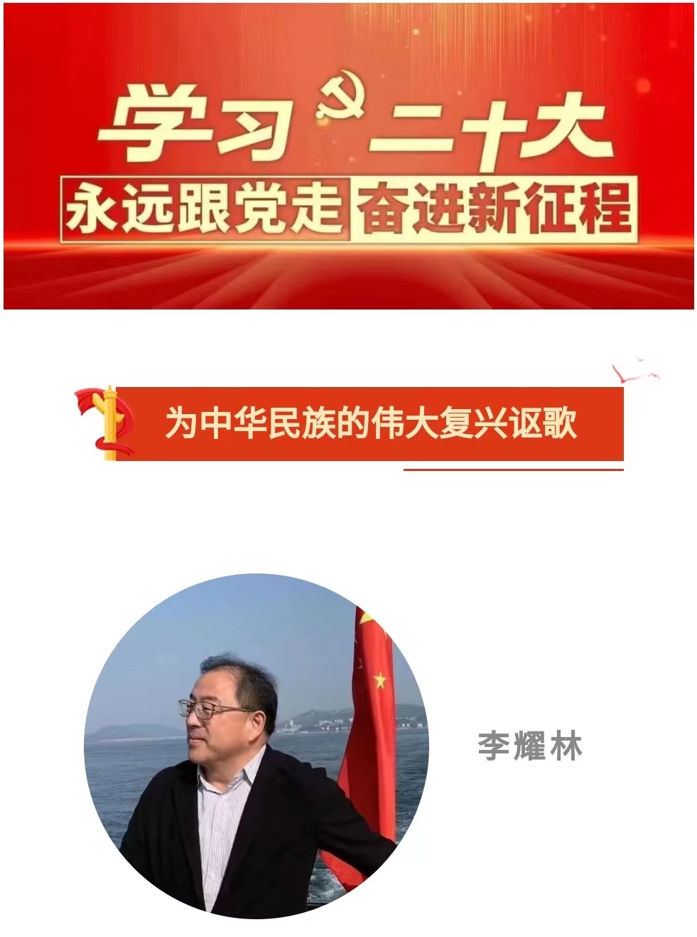 10月16日收看中国共产党第二十次全国代表大会习近平总书记的重要报告,并认真阅读全文。深感报告的巨大鼓舞力量和中国共产党第二个百年的光辉远大前景的历史召唤。