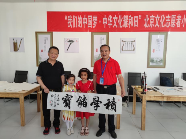 7月18日,皮山县文化馆迎来了由高毅、申卉芪、廖廷建、高风勇、陈国华组成的北京市书画小分队,首都书画家们不顾舟车劳顿,与当地书画界同仁、爱好者进行了深入的交流,开展书法笔会活动,现场挥毫创作《积学储宝》《文化润疆》《京和一家亲》等作品,赠予当地儿童,将京和两地浓浓深情以及对文艺初心的深刻理解融入中华文脉悠悠墨香,进一步加强了民族认同、历史认同和文化认同。