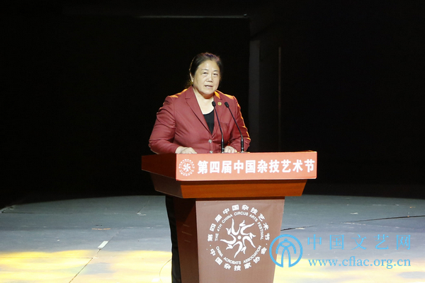 9月16日,第四届中国杂技艺术节在河南濮阳开幕。图为河南省政协副主席周春艳在开幕式上致辞。中国文艺网 高晴摄