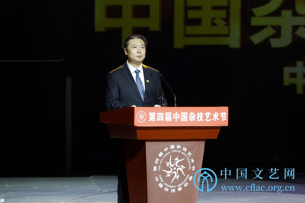 9月16日,第四届中国杂技艺术节在河南濮阳开幕。图为中国杂技家协会分党组书记、驻会副主席王仁刚致开幕辞。中国文艺网 高晴摄