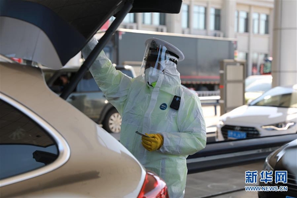 3月3日,在“首都南大门”京港澳高速公路河北涿州检查站,执勤人员认真核查每一辆过往车辆和人员。 新华社发