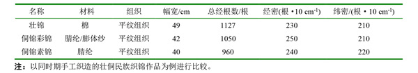 表2 壮侗织锦织物规格比较
