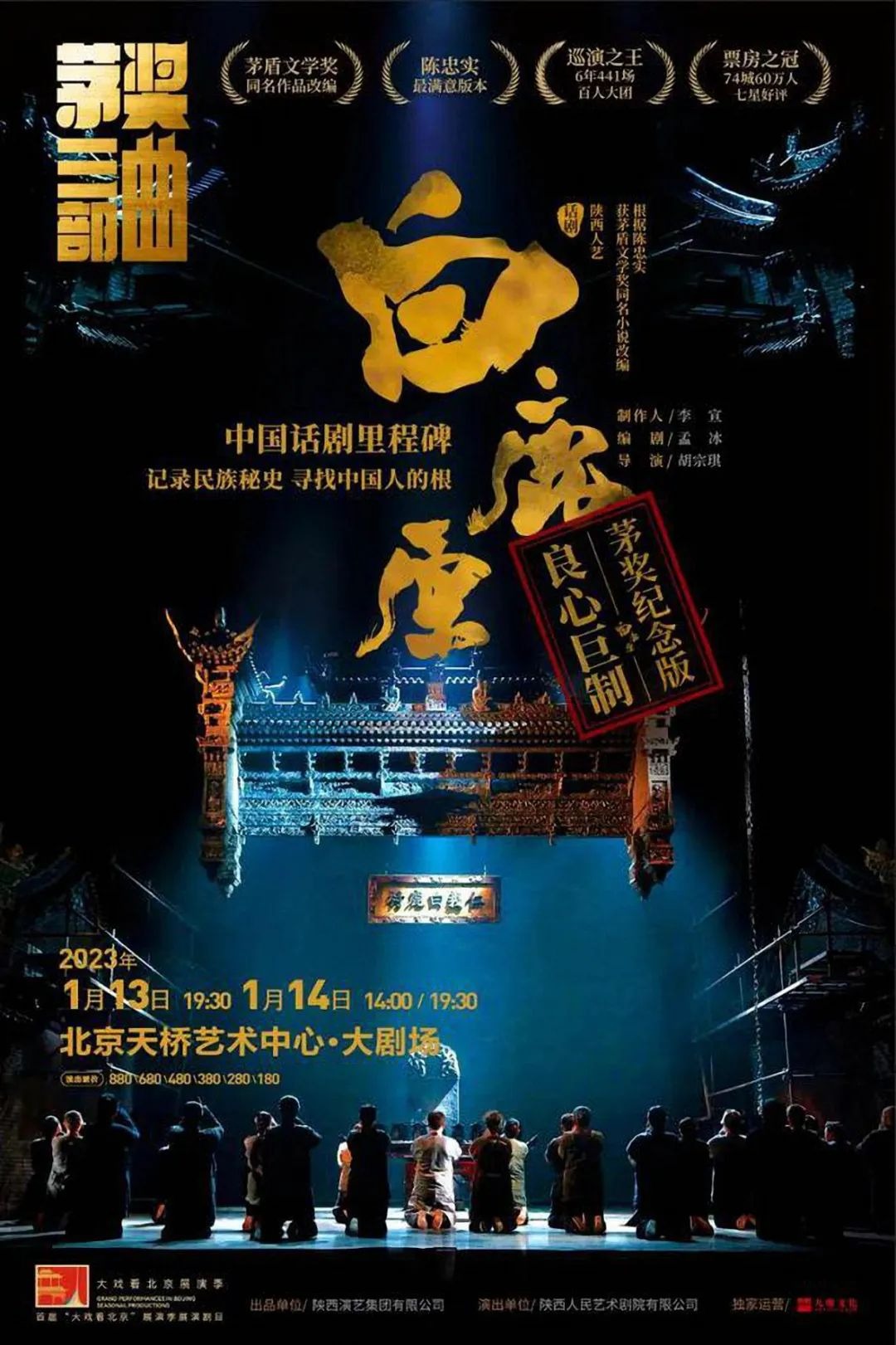 简介:作为首届“大戏看北京”展演季展演剧目,陕西人艺话剧《白鹿原》根据获得茅盾文学奖的陈忠实同名小说改编而成,由孟冰编剧、胡宗琪导演,陕西人艺老中青三代实力演员打造,故事以白嘉轩“巧取风水地”开篇,全剧用倾倒的“仁义白鹿村”牌匾作结。《白鹿原》自2016年在北京成功上演以来,开创了百人大团6年74座城市94家剧院441场巡演的纪录,六年来观看观众达到60余万。