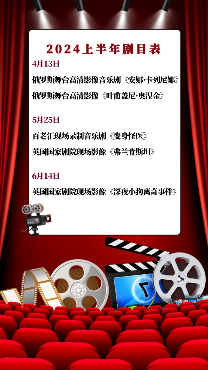 今年上半年,“戏剧光影——老舍剧场高清舞台艺术影像放映”活动还将带来这些经典剧目。(以当日具体放映剧目和时间为准。)