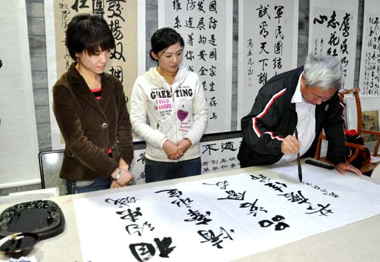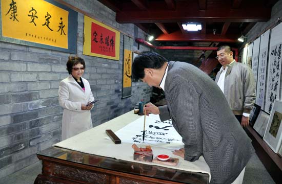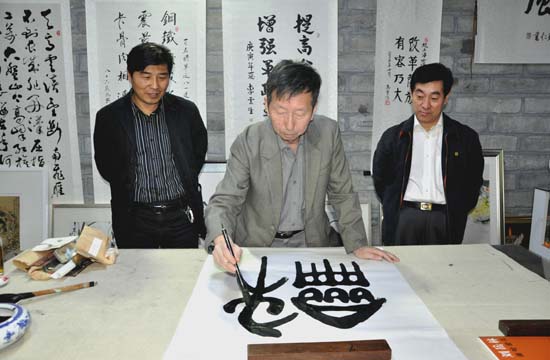 东城区文联副主席生存义,中国书协会员郑彦伟,著名书画家、篆刻家秦润波等多位书画名家齐聚一堂,现场挥毫泼墨,在短短两个多小时的时间内,创作完成书画作品30余幅,表达了对共和国61周年华诞的深情礼赞和对新东城的美好祝愿。