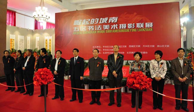 11月5日上午,“崛起的城南”——五区书法美术摄影联展在军事博物馆隆重开幕。本次活动由东城区文联、丰台区文联、西城区文联、房山区文联、大兴区文联共同主办。北京市文联党组书记、常务副主席朱明德,北京市文联党组副书记、驻会副主席黎晶,北京书法家协会驻会副主席、秘书长田伯平,东城区政协副主席刘忠胜,东城区文联党组副书记、常务副主席王富国,东城区文联秘书长李宏等有关部门领导出席开幕式,共有500余名艺术家及文艺爱好者参观展览。
