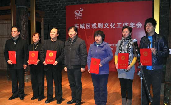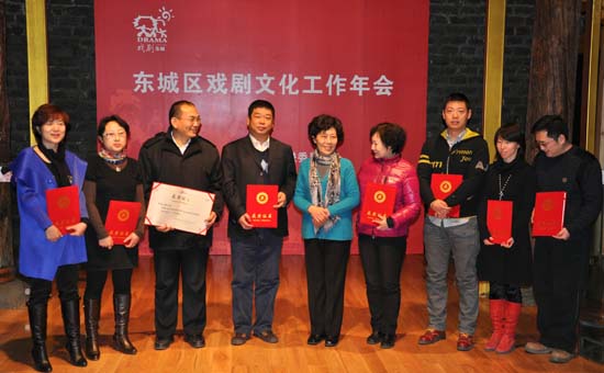12月29日下午,由东城区戏剧建设促进委员会举办的2010年戏剧文化工作年会在南新仓皇家粮仓隆重举行。区人大副主任金旭、副区长毛桂芬、著名戏剧理论家童道明,中国儿童艺术剧院院长周予援、中央戏剧学院副院长廖向红等领导、戏剧专家和嘉宾出席活动。区文委、区文联等戏促会成员单位主管领导,部分驻区戏剧院团和剧场企业负责人及多家新闻媒体参加了本次年会。
