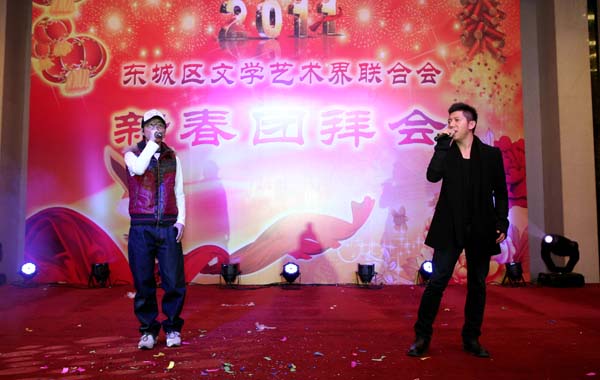 在随后的演出环节中,著名主持人瞿弦和、阚丽君,著名京剧表演艺术家于魁智、李胜素,著名表演艺术家曹灿,羽·泉组合等表演了精彩的戏曲、朗诵、歌舞等文艺节目,掀起了团拜会的阵阵高潮。