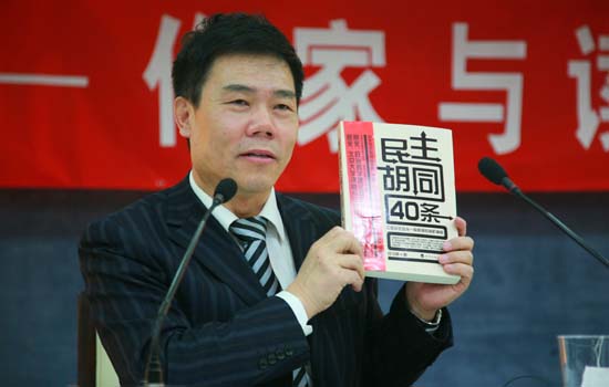 司马南,从公务员、报社记者到电视节目主持人……不管角色如何转变,他却始终没有放弃内心的追求,用率性犀利的笔触,描绘着民主进程。2011年1月,其新著《民主胡同40条》一经面世,便在京城掀起了一股胡同风。他用激扬的文字和理性的思考,叩问政治体制改革路在何方,“胡同”虽窄,确可通衢。