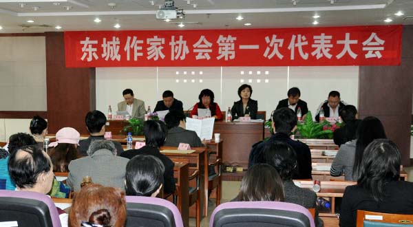 4月13日上午,东城作家协会第一次代表大会隆重召开。区文联秘书长李宏,东城作家协会(临时)顾问代表叶廷芳、田珍颖、马光复等,及作协理事、主席团成员、会员代表60余人参加会议。