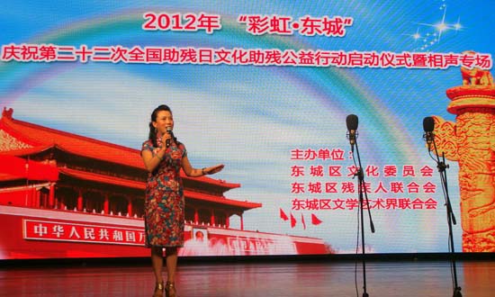 为迎接第22个“全国助残日”的到来,切实加强残疾人文化服务,保障残疾人文化权益,5月18日下午,东城区文联与区残联、区文委在东城区第一文化馆风尚剧场联合举办了东城区2012年“彩虹·东城”文化助残公益行动启动仪式暨相声专场演出。北京市残联党组书记马大军、北京市残疾人活动中心主任李焕林、东城区委常委宋甘澍以及区残联、区文委、区文明办等有关部门领导出席活动。300余名残疾人和亲友参加了启动仪式并观看演出。