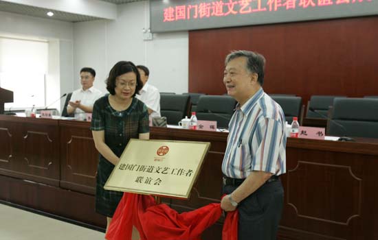 金晖部长和赵书主席为建国门街道文艺工作者联谊会揭牌