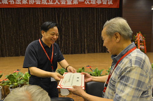 新任东城书法家协会主席李福祥为名誉主席颁发聘书